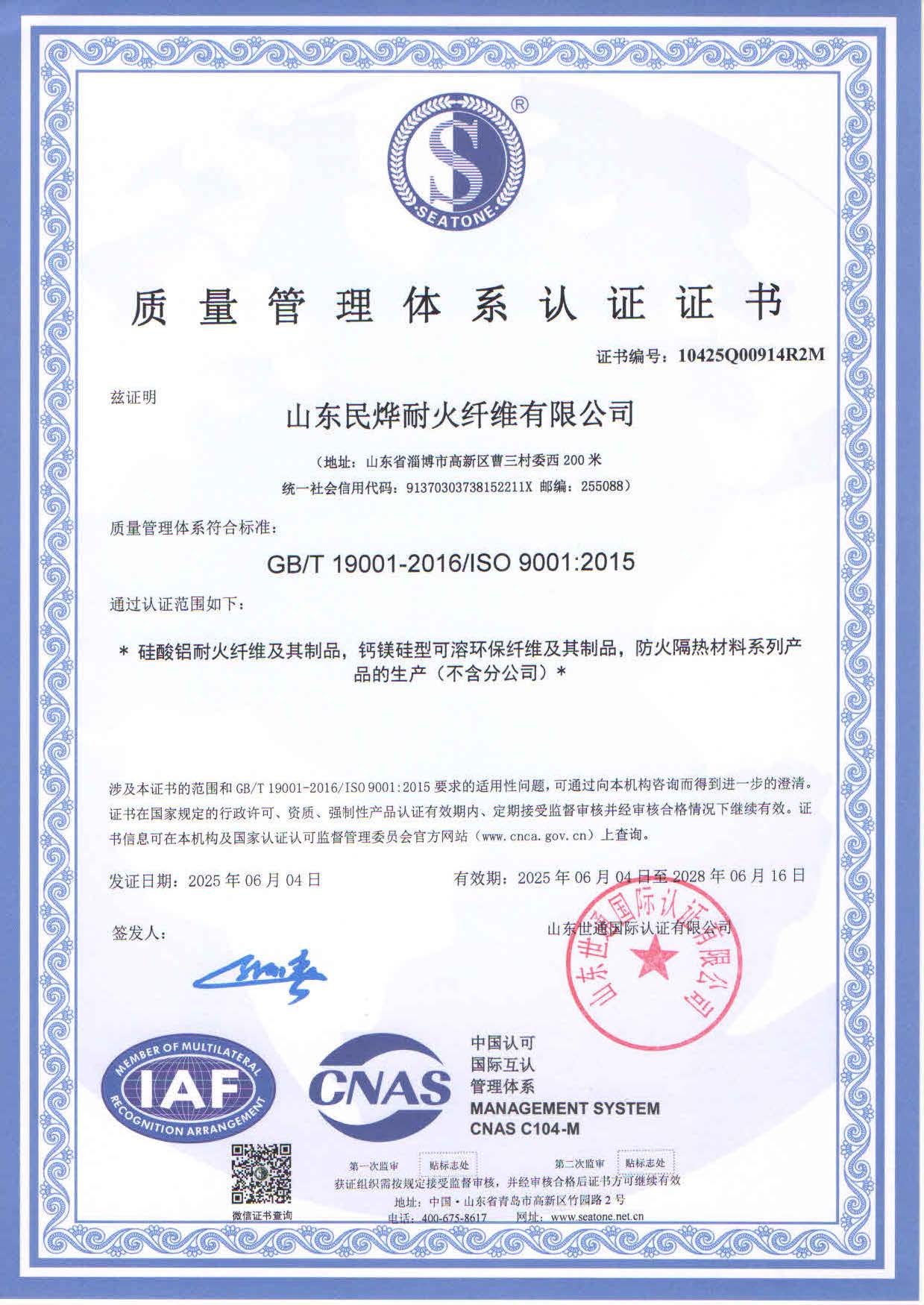 • 2025年質量體系認證證書